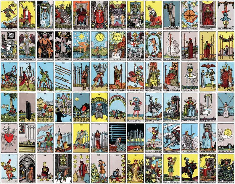 Parmi les nombreux Tarots actuellement disponibles, j’ai choisi comme référence le jeu de Waiteiii, non pas parce qu’il est le plus esthétique (malheureusement ce n’est pas le cas), mais parce qu’il est généralement reconnu comme étant le plus précis dans sa symbolique.
